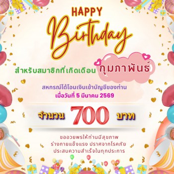 ประกาศ เรื่อง การโอนเงินโครงการเอื้ออาทรต่อสมาชิก สำหรับสมาชิกที่เกิดเดือน กุมภาพันธ์ 2569