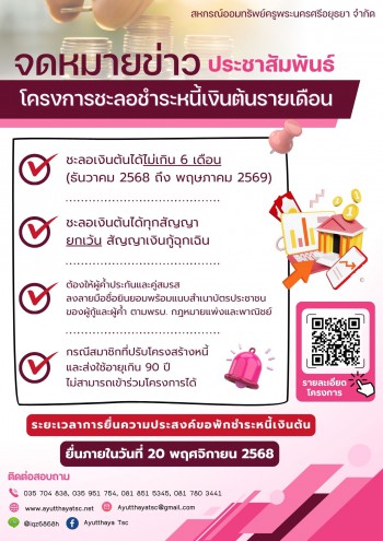 สหกรณ์ฯ โอนเงินโครงการเอื้ออาทรต่อสมาชิก สำหรับสมาชิกที่เกิดเดือน ตุลาคม 2568